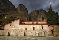 Είναι το πρώτο μοναστήρι που συναντάμε ανεβαίνοντας προς τα Αγια Μετέωρα από το Καστρακι. Η ίδρυσή του ανάγεται στις αρχές ως τα μέσα του 14ου αιώνα. Το 1527 έγινε η αποπεράτωση της αγιογράφησης του καθολικού από τον Θεοφάνη Στρελίτζα τον Κρήτα, που συγκαταλέγεται στους πιο σημαντικούς αγιογράφους της Ορθοδοξίας. Στις τοιχογραφίες διακρίνουμε την μεγάλη τελειότητα στο σχεδιασμό των μορφών και την άριστη χρωματική απόδοση.
